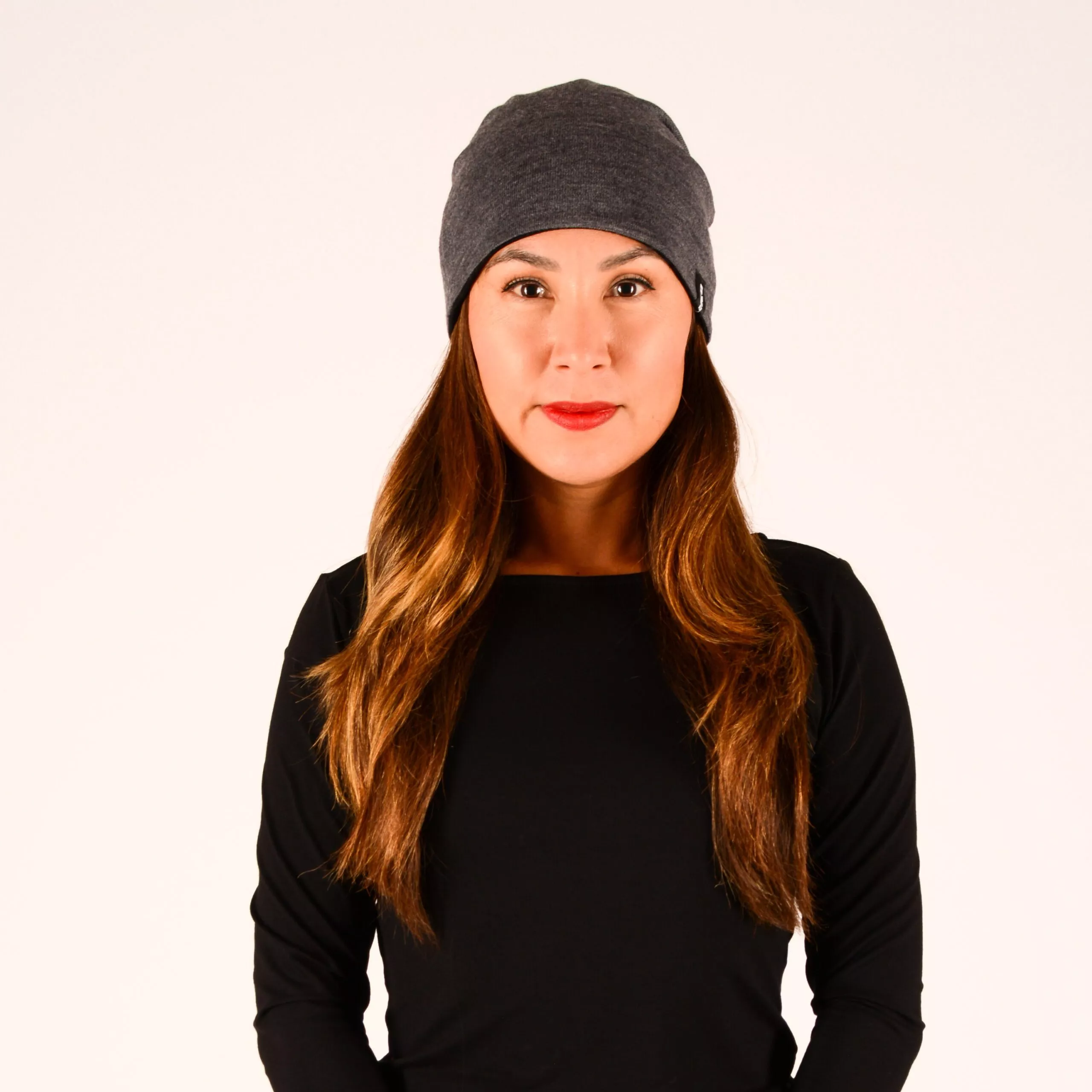 Beanie Haube aus hochwertigem Feinstrick aus Merinowolle gefüttert mit Viskose Jersey.