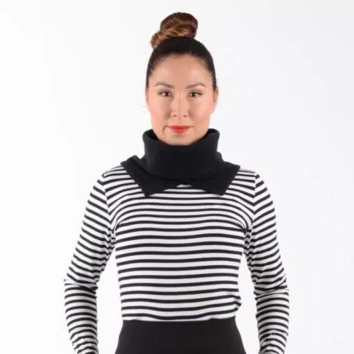 Der „Merino Kragen Schwarz“ ist ein wunderbares Winter-Accessoires mit großer Wirkung.