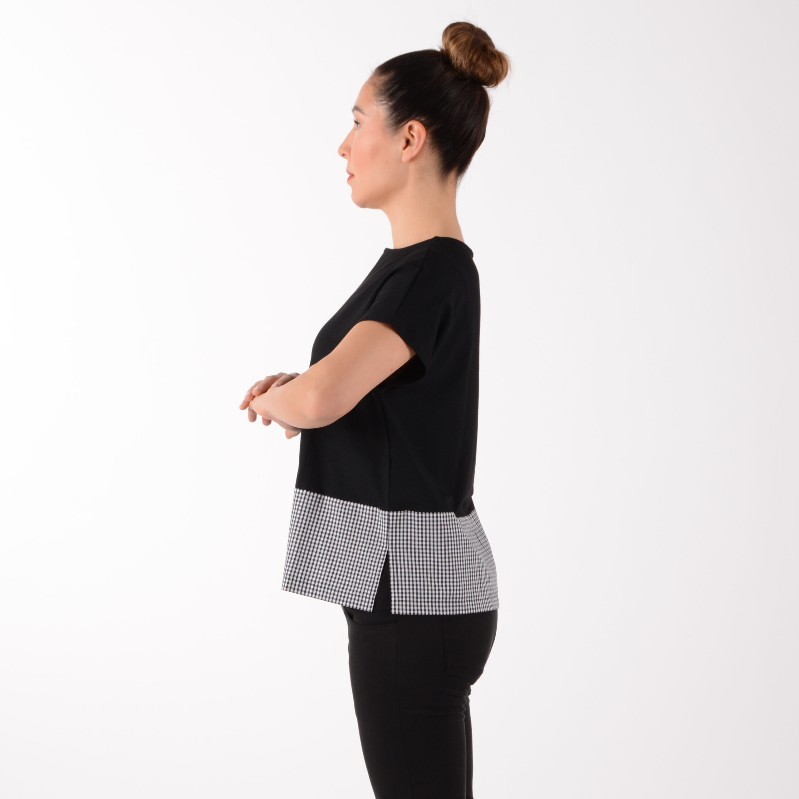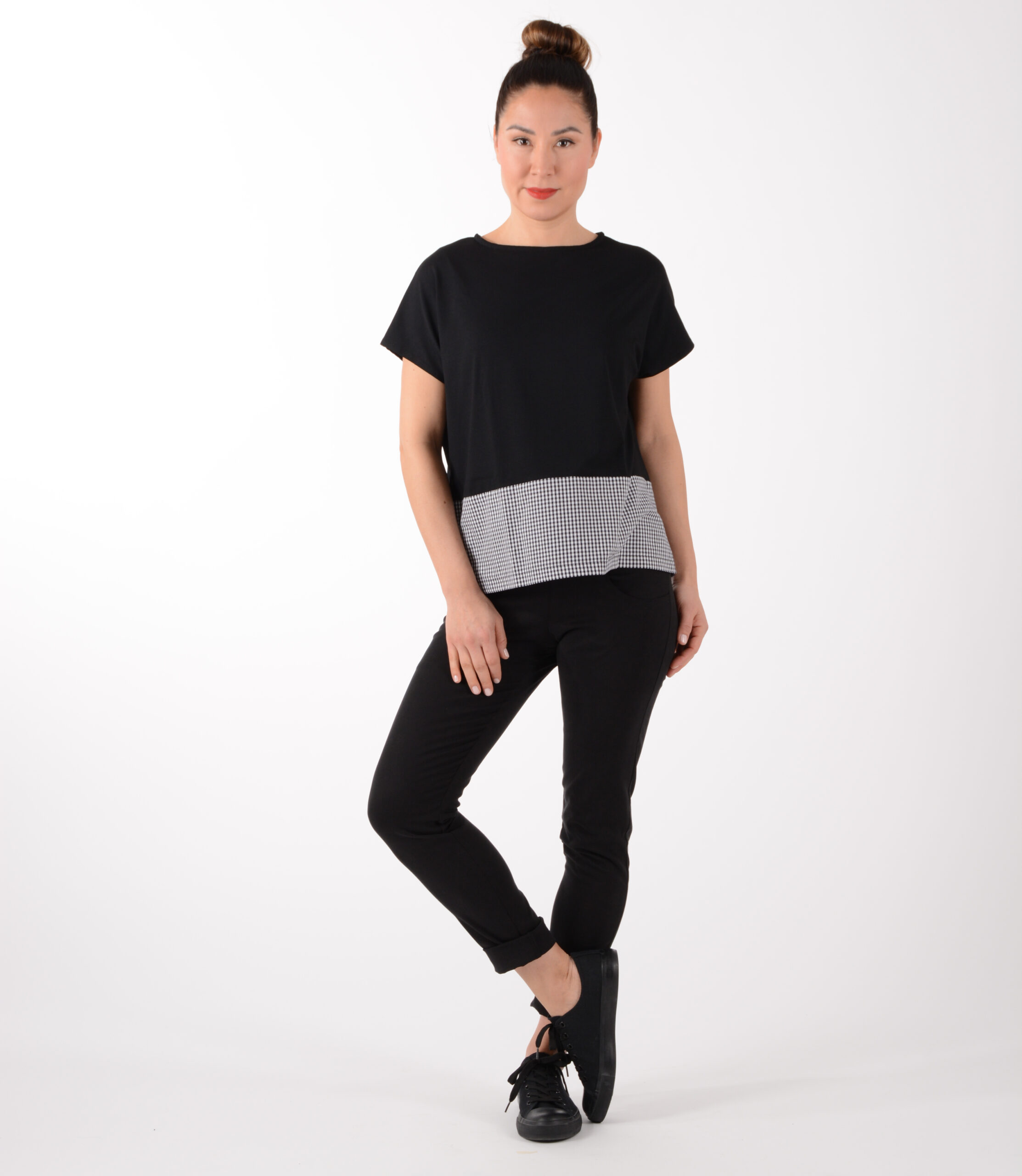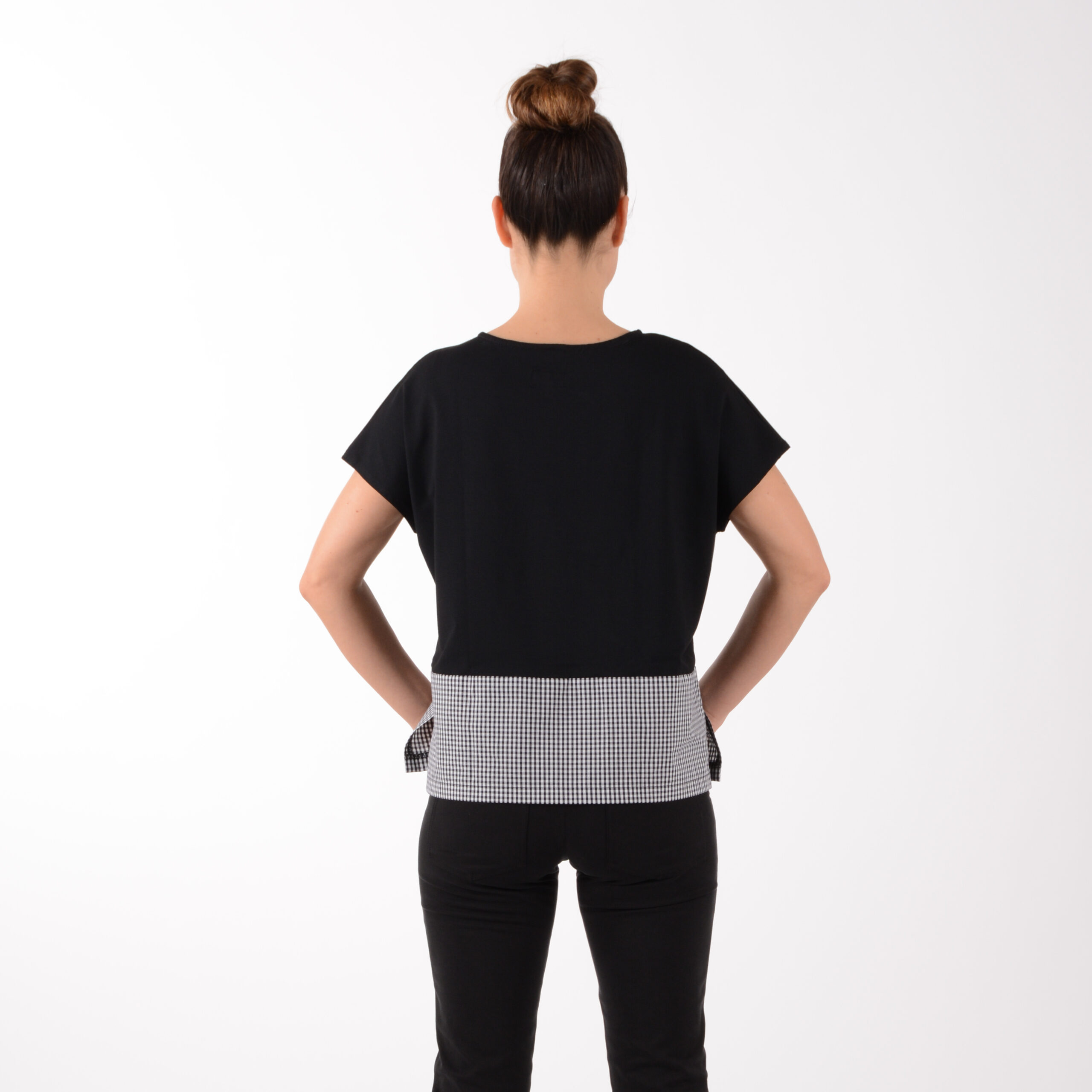 Aus hochwertigem Viskose Jersey in schlichtem Schwarz gemischt mit Karomuster