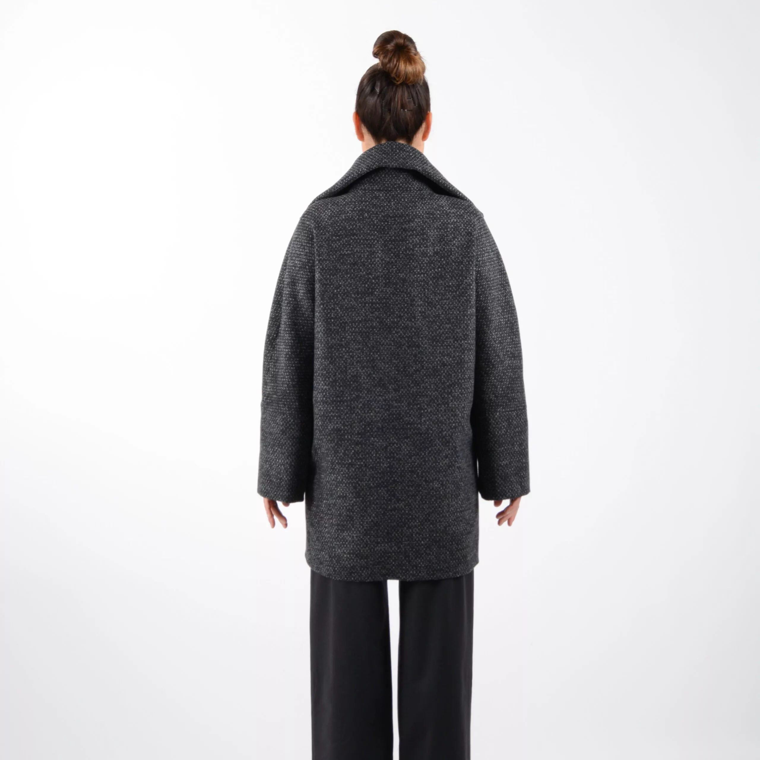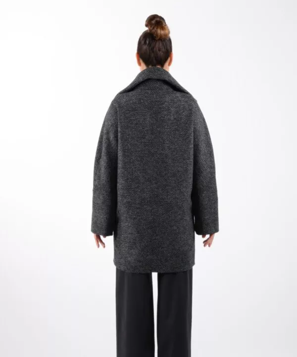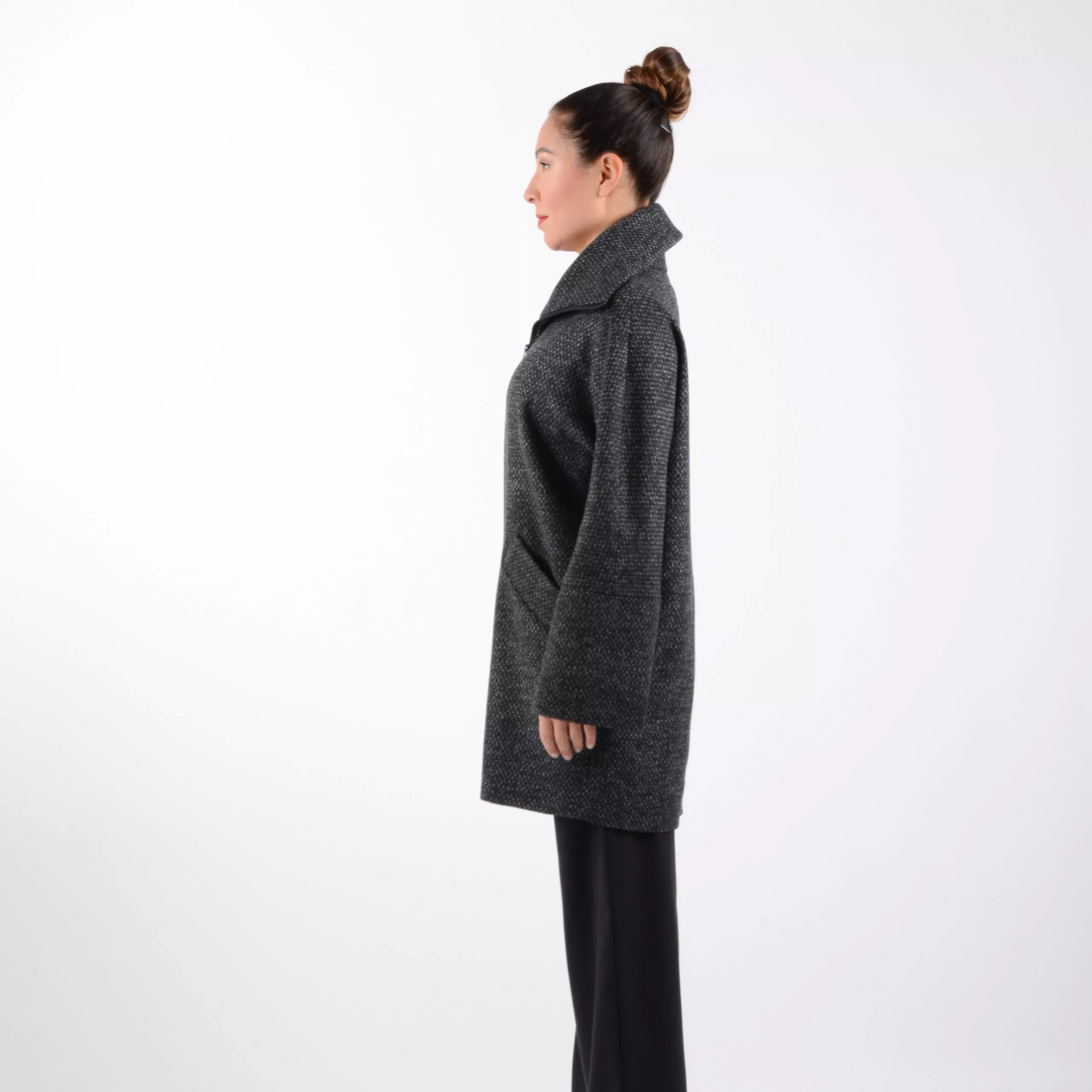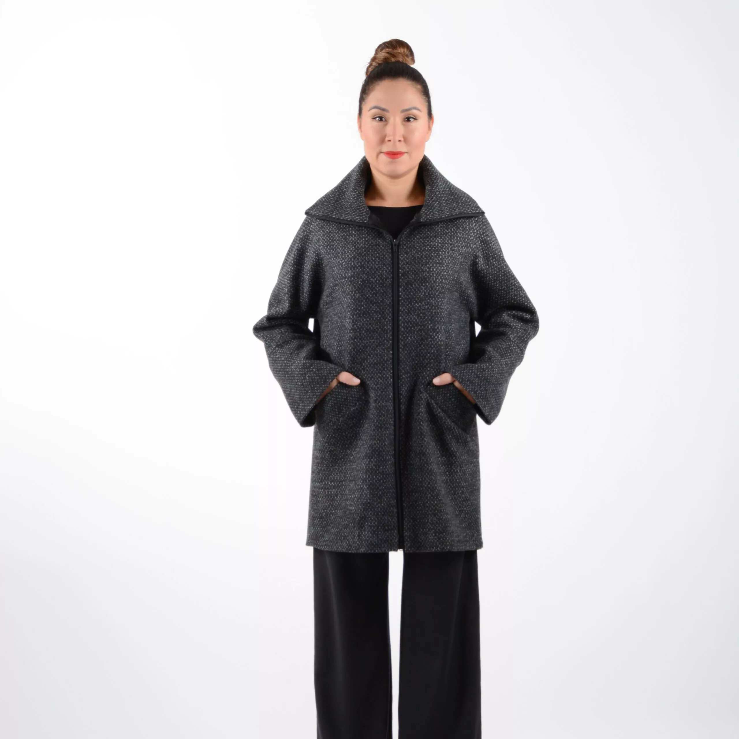 Die „Woll-Zipp-Jacke“ in Grau ist eine legere, bequeme Winterjacke. Die angeschnittene Ärmelform bietet genügend Platz für eine Pulli darunter. Der hohe Stehkragen kann umgelegt oder hochgeschlossen werden. Die Jacke hat Leistentaschen und einen Reissverschluss, welcher auch von unten zu öffnen ist – dadurch erhält man mehr Bewegungsfreiheit beim zB Sitzen, Radfahren usw. Das hochwertige Wollmaterial ist weich und wärmend, ohne dabei schwer zu sein.